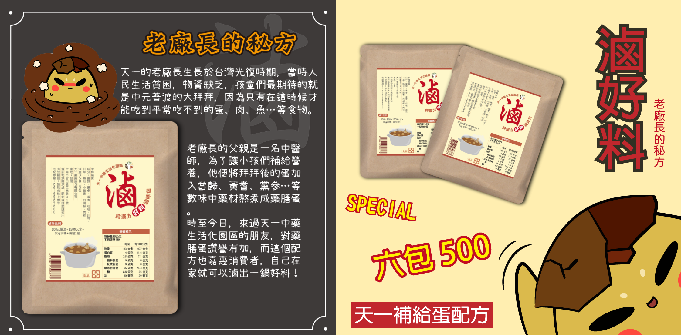 時至今日,來過天一中藥生活化園區的朋友,對藥膳蛋讚譽有加,而這個配方也嘉惠消費者,